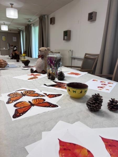 À La Maison Ensoleillée, cette belle saison devient source d’inspiration pour nos ateliers artistiques. Les résidents laissent libre cours à leur imagination à travers la peinture, le collage et la création de décorations automnales. Les feuilles ramassées lors des promenades se transforment en œuvres originales, les couleurs se mélangent et donnent naissance à de jolies compositions.