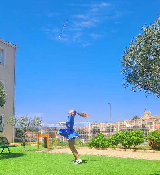 Ce vendredi après-midi une jeune fille nous a fait une démonstration de majorette dans le jardin de la résidence.